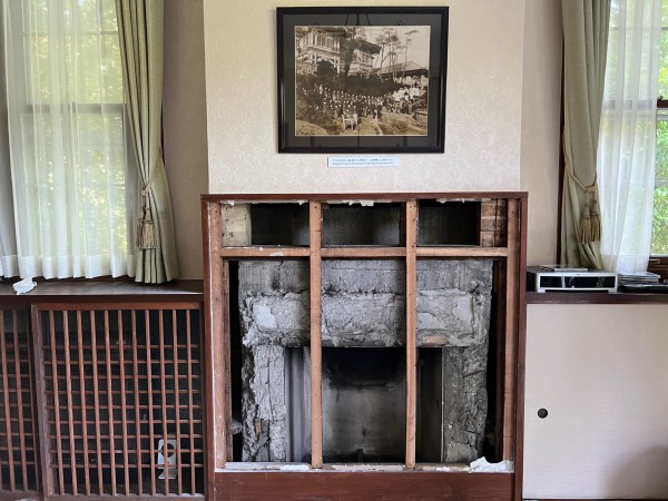 Houseのリビングルームには竣工当時、木彫刻の装飾がついた暖炉がありました。文化財の洋館を当時の姿に蘇らせたい!クラウドファンディングで復元します。ご協力頂けるとうれしいです。5万円の返礼品は、HOUSE Bの平日宿泊券。平日利用であればお得に宿泊できます。