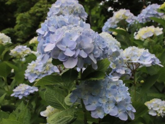青色の紫陽花は酸性の土壌、赤色の紫陽花はアルカリ性の土壌だそうです。土の㏗度を変えて、来年赤色の紫陽花が咲くかトライしてみます。
